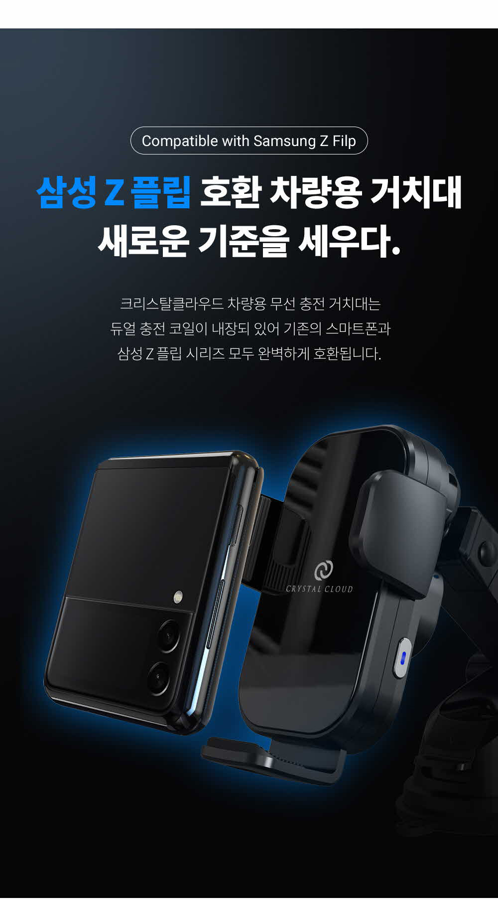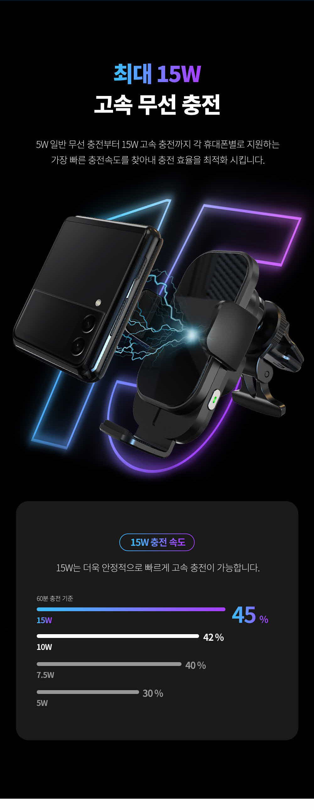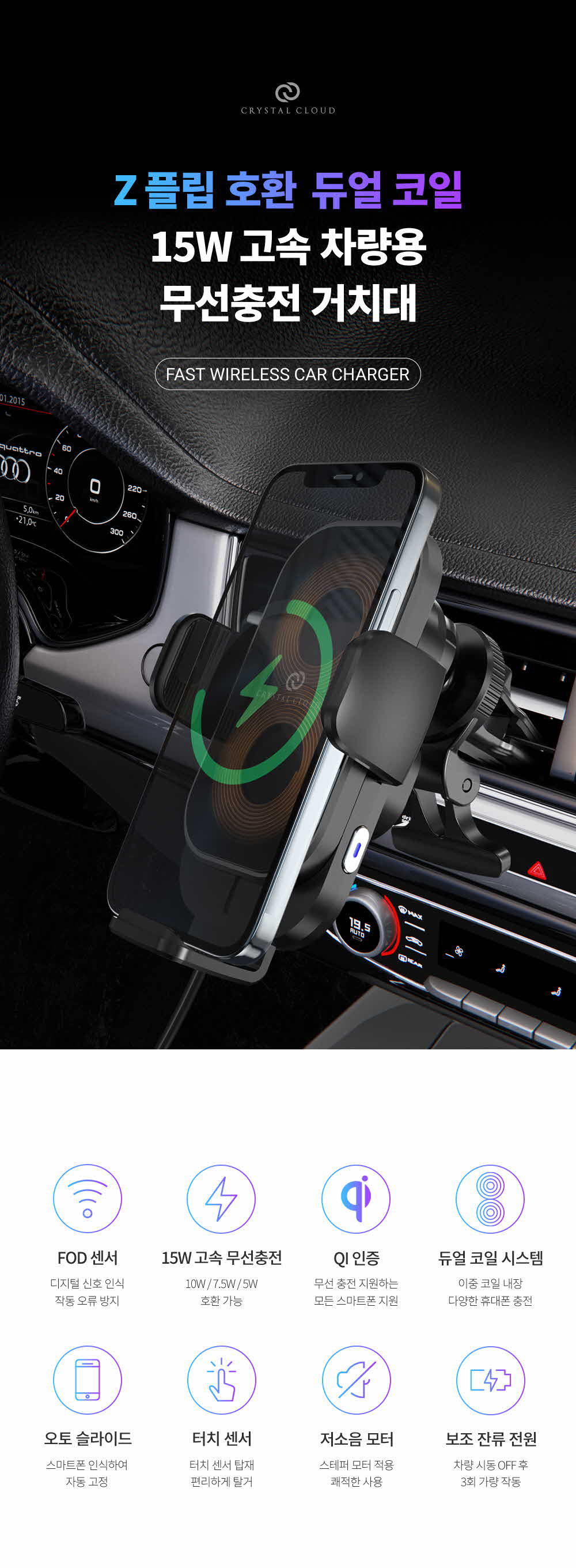 갤럭시 z플립3 아이폰 차량용 듀얼코일 핸드폰 고속 무선충전 거치대 충전기 15WSOLDOUT