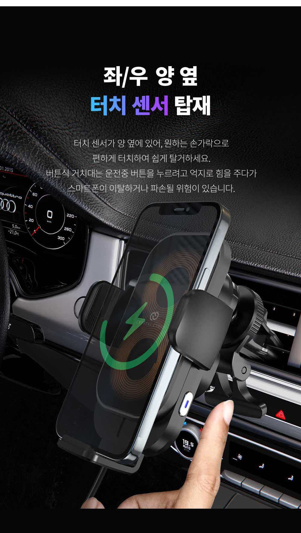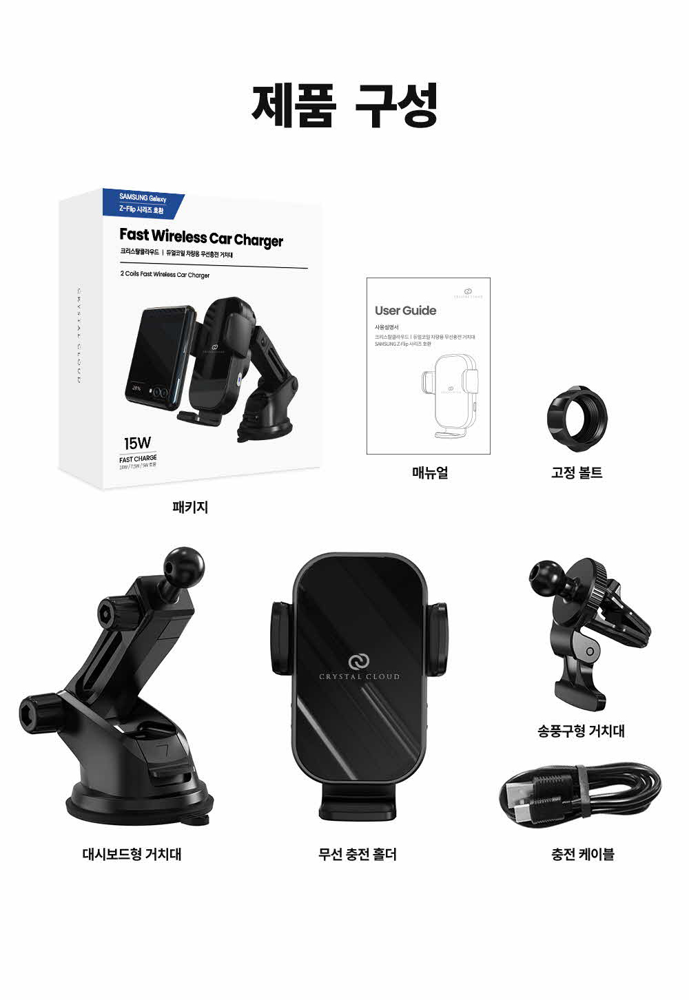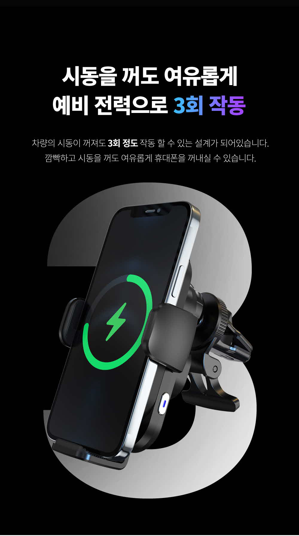 갤럭시 z플립3 아이폰 차량용 듀얼코일 핸드폰 고속 무선충전 거치대 충전기 15WSOLDOUT